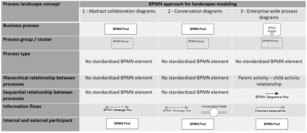 Review of BPMN approaches for landscapes modeling