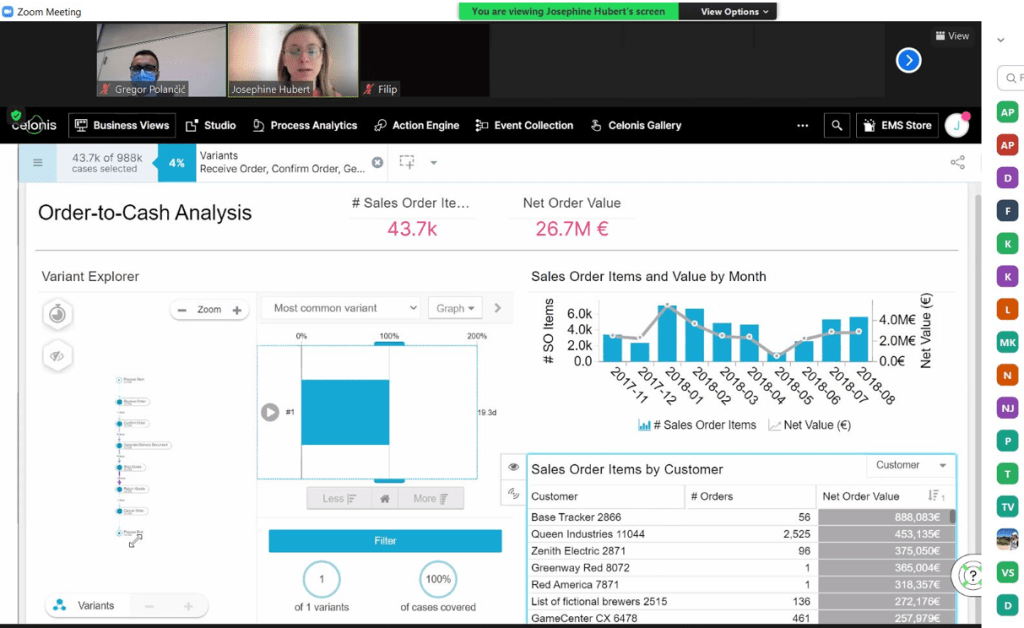 Many thanks to the Celonis, especially Ms. Josephine Hubert, for the willingness to present valuable and practical insights into process mining with Celonis EMS.